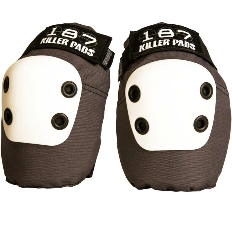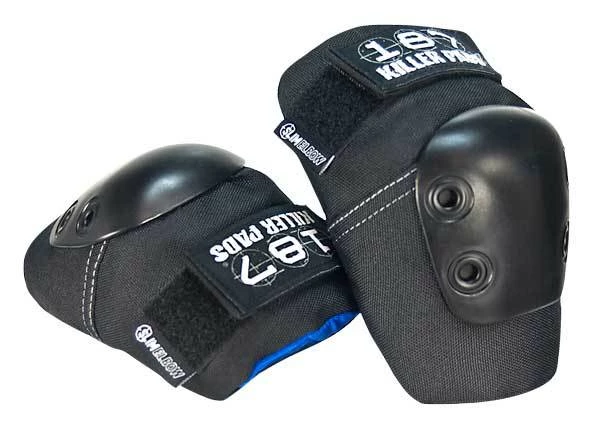 187 Slim Elbows. Â Full sleeve design with velcro on top only. Â Set elastic on bottom for easy on and off. Â Small like the Fly Elbow pad, but still has lots of padding. Â