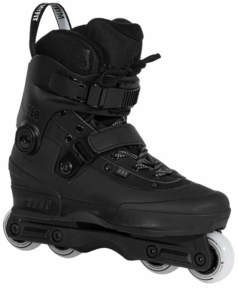 Back in black for 2021, it’s the USD Aeon 60 XXI. The Aeon is one of the most capable, innovative aggressive skates to hit the market…ever, and now it’s back with a sleek, dark style and the performance you expect from a legendary aggressive skate. The USD Aeon 60 XXI has a unibody design that incorporates that boot and frame into a single piece, reducing weight and giving skaters a low center of gravity that provides superb stability, control, and power transfer. This high-performance aggressive skate has a wide soul plate and a massive H-Block area that gives you all the tools you need to push your limits and discover what you’re really capable of. For 2021 USD Aeon 60 XXI now has a reworked MYFIT liner with improved comfort and helps improve control. The skate also has a new thicker shock absorber that provides excellent cushioning. Get big airs, land big gaps, and wear a big smile the whole time. This impressive aggressive skate is ready for the skatepark, ready for the street, and ready to provide excellent performance. Complete with all-new 60mm UNDERCOVER Apex wheels with aluminum cores and a new Ultra-High Rebound compound accompanied by smooth WICKED bearings, this is a premium aggressive skate that’s ready to help you reach your full potential on inline skates.