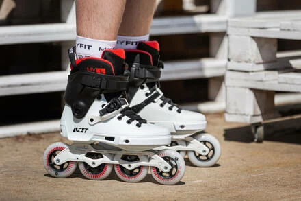 The POWERSLIDE NEXT Black White 90 is the ideal urban freeride inline skate, giving you the perfect balance of speed and stability. You’re going to love cruising the city in this gorgeous skate, with a striking white/black colorway the skate is as stylish as it is capable. The NEXT has a durable and stable hardboot, making it the perfect base for urban freeride inline skating. It’s a precision boot that’s able to take a beating, so go ahead and push your limits, the POWERSLIDE NEXT Black White 90 always has your back. No two skaters are exactly alike, and that’s why the NEXT Black White 90 is customizable – allowing you to adjust the height and forward flex of the cuff. To further personalize your skate, the skate has a heat-moldable MYFIT Recall dual-fit liner with memory foam that forms to your foot, providing excellent cushioning and improved responsiveness. The white Elite aluminum frame on the POWERSLIDE NEXT Black White 90 matches the style of the skate perfectly. More than simply good-looking, the unique shape of the Elite provides great control and stability. The frame is connected to the boot with the groundbreaking TRINITY 3-point mounting system, giving you a low center of gravity, improved balance, and unmatched power transfer in every stride. High-performance inline skates need high-performance wheels. The POWERSLIDE NEXT Black White 90 doesn’t disappoint. Rolling on POWERSLIDE Spinner 90mm/88A wheels and WICKED ABEC 9 freespin bearings, you don´t have to worry to arrive late. From fast and furious action to relaxed city cruising – with the POWERSLIDE NEXT Black White 90 urban freeride inline skate it’s just double fun to do so.