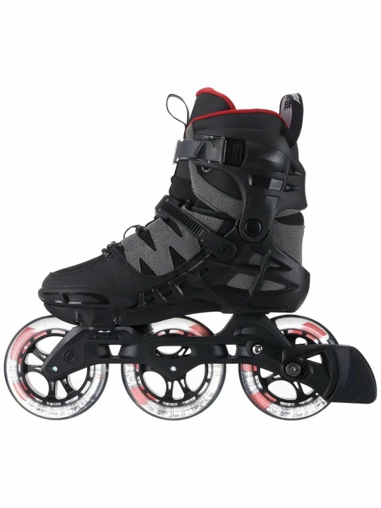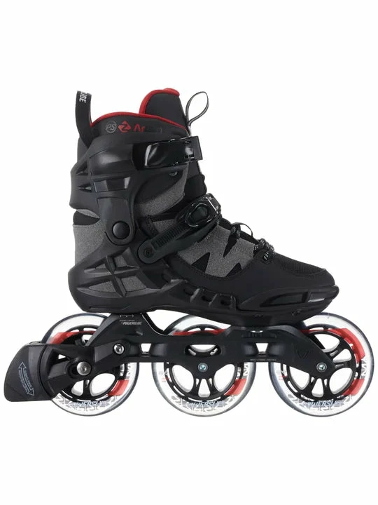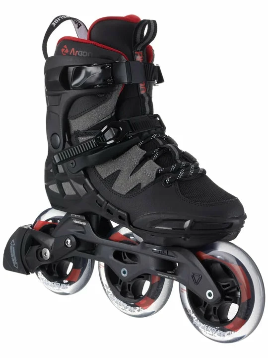 Powerslide Argon Ash 110 Mens Inline Skates. Updated uppers hug the foot more for added support and they look and feel better. Trinity X mounting allows more adjustability both laterally and front to back. Adjustments can help to turn better, add power at push-off, or correct ankle roll. Fast and smooth 110mm wheels used with short frames (9.6″ – removable and adjustable) combines speed and agility. Short frames keep the skater in an aggressive forward-leaning stance that endurance skaters will enjoy. The boots are compatible with any trinity mount frame from Powerslide should you want to change frames and/or wheel configurations later on. Recall fit liners (not removable) start out snug, and break-in naturally to maintain a performance fit.